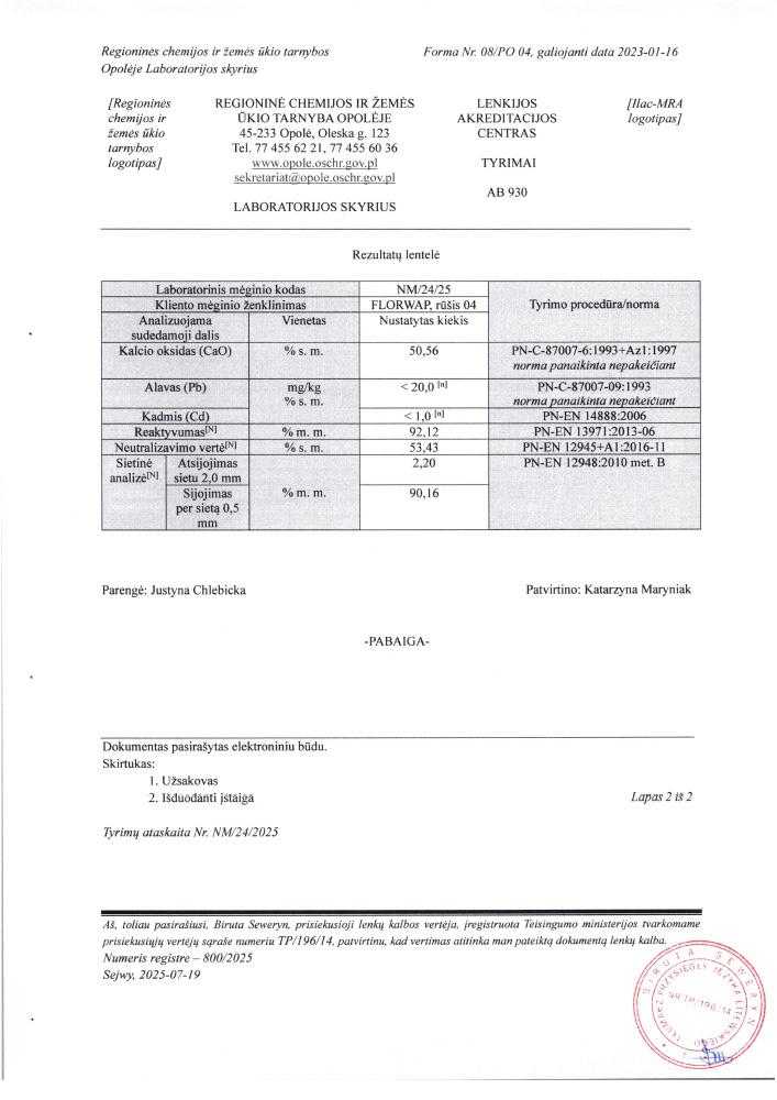 Kalcio trąšos, pagamintos iš smulkintos kalkakmenio 04 rūšies ir kalkių miltelių, kurių dalelių frakcija 0–100 mikronų. Šios trąšos pasižymi aukštu kalcio oksido (CaO) kiekiu, dideliu reaktyvumu ir 100 % tirpumu. Dėl dviejų kalcio rūšių derinio FlorWap trąšos užtikrina ilgalaikį maistinių medžiagų išlaisvinimą į dirvą, todėl efektyviau tiekiamas kalcis į augalų šaknų sistemą ir užkertamas kelias kalcio išplovimui iš dirvos. Trąšų gamybai naudojamos medžiagos atrenkamos iš aukštos kokybės žaliavų, kas garantuoja galutinio produkto kokybę. FlorWap trąšos skirtos naudoti visų žemės ūkio, sodininkystės ir daržininkystės kultūrų auginimui.